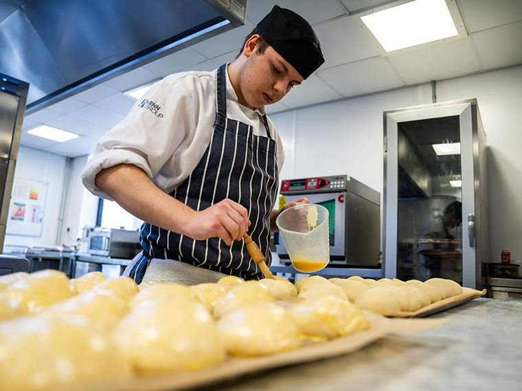 A student preparing food in The Wharncliffe kitchen